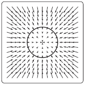 A vector field with vectors pointing along circles centered at the origin and in a clockwise direction. Vectors get longer as distance from the origin increases. Also shown is the circle of radius \(1.5\) centered at the origin. The circle is oriented clockwise.