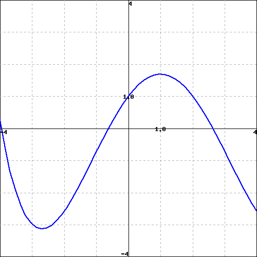 Carefully sketch the derivative function of the given function (you will want to estimate values on the derivative function at different \(x\) values as you do this). Use your derivative function graph to estimate the following values on the derivative function.