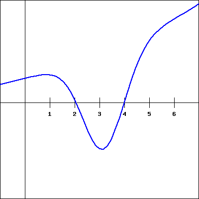 For the function \(f(x)\) shown in the graph below, sketch a graph of the derivative. You will then be picking which of the following is the correct derivative graph, but should be sure to first sketch the derivative yourself.