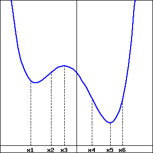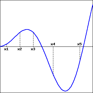 Figure1.6.3.A function that is decreasing on the intervals \(-3 \lt x \lt -2\) and \(0 \lt x \lt 2\) and increasing on \(-2 \lt x \lt 0\) and \(2 \lt x \lt 3\text{.}\)
