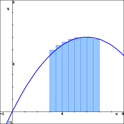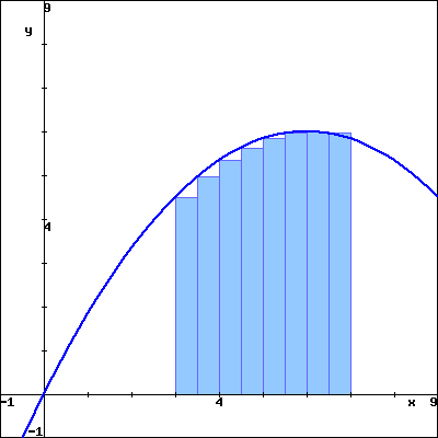 Left endpoint Riemann sum for \(y = \frac{-x^{2}}{6}+2x\) on \(\lbrack 3, 7 \rbrack\)