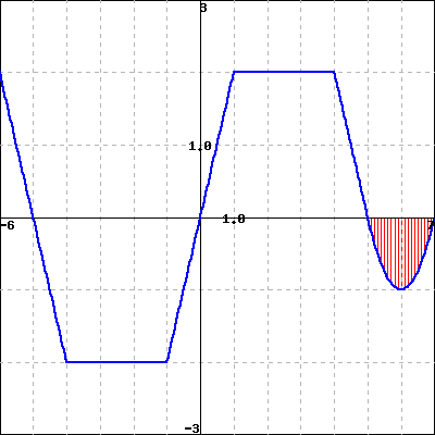 B. If the vertical red shaded area in the graph has area \(A\text{,}\) estimate: \(\int_{-5}^{7} f(x) dx =\)