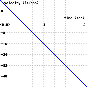 The graph of the velocity function \(y=v(t)= -32t+16\) on the interval \([0,2]\) is shown below.