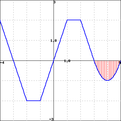 \(\int_{-3}^4 g(x) \, dx\text{,}\) where \(g\) is the function pictured in the following figure. Assume that each portion of \(g\) is either part of a line or part of a circle.