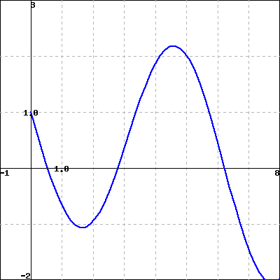 Sketch a precise graph of \(y = A(x)\) on the axes at right that accurately reflects where \(A\) is increasing and decreasing, where \(A\) is concave up and concave down, and the exact values of \(A\) at \(x = 0, 1, \ldots, 7\text{.}\)