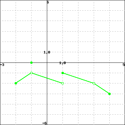 For each of the values \(a = -2, -1, 0, 1, 2\text{,}\) determine \(\displaystyle \lim_{x \to a^-} f(x)\) and \(\displaystyle \lim_{x \to a^+} f(x)\text{.}\)